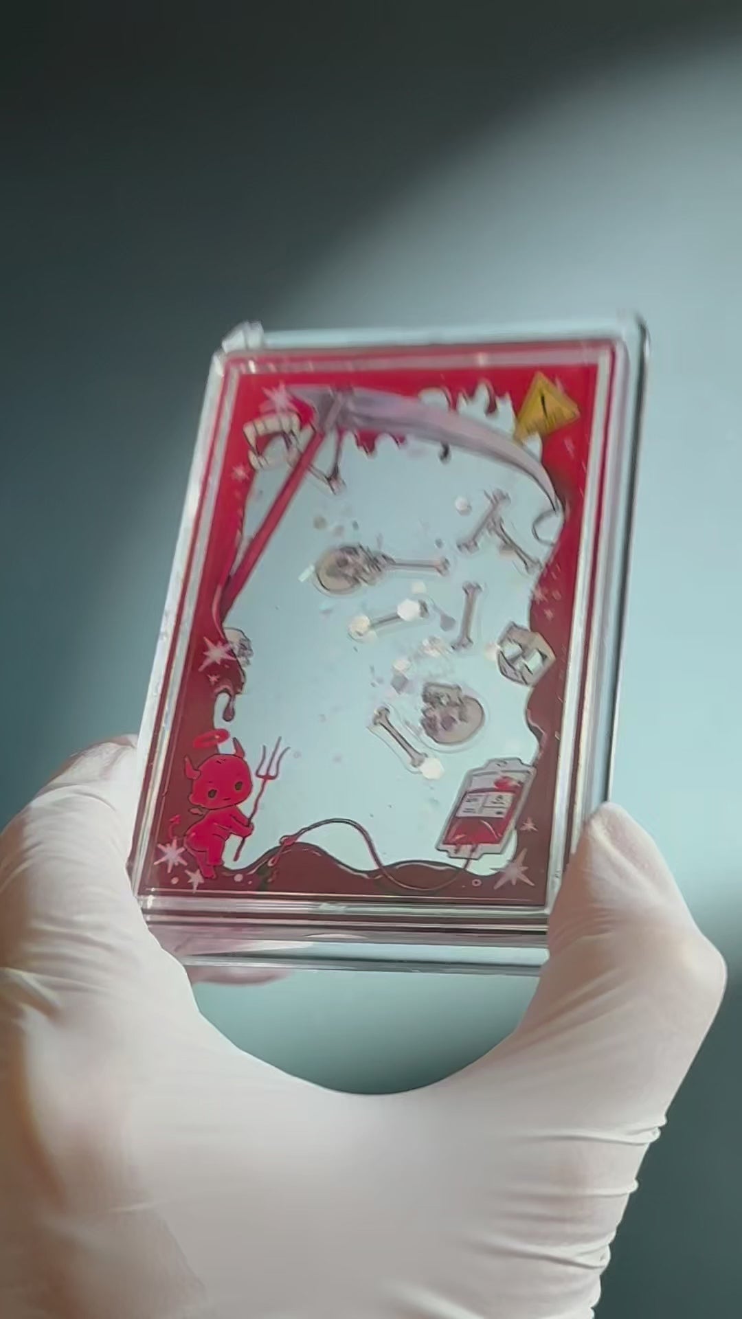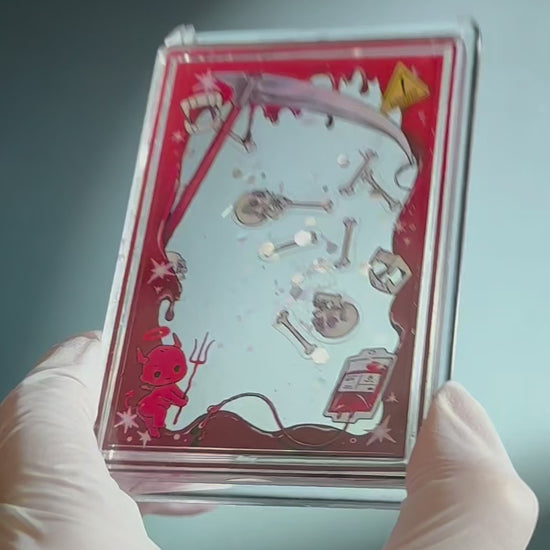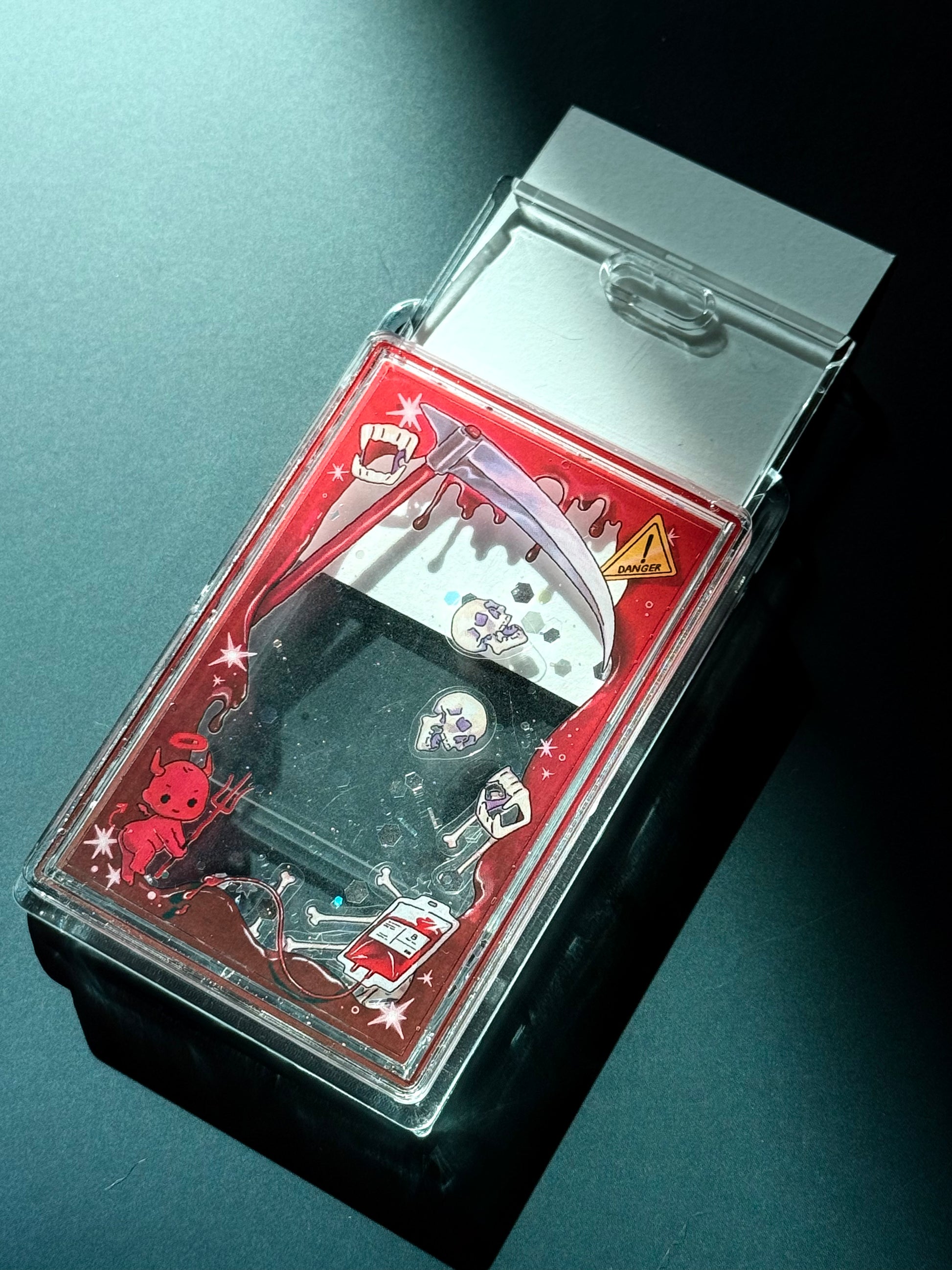 The front of the Top Loader features charming illustrations, while the interior contains liquid with floating sparkles. The back compartment, which holds the liquid, can accommodate items such as photos or cards, measuring approximately 55*90 mm in size.