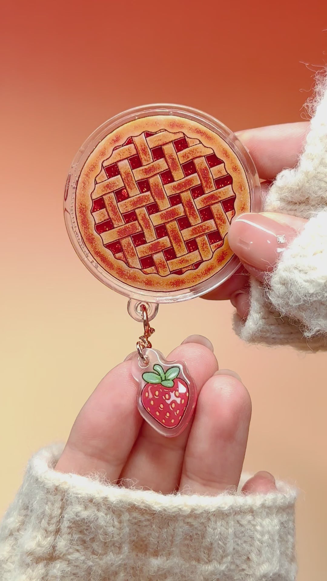Strawberry Pie Shaker Charm | Keychain | Badge Reel | Phone Grip